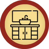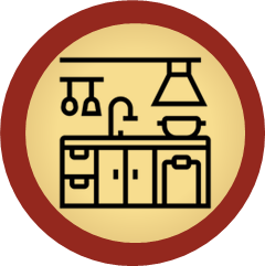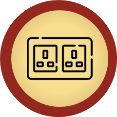 Built-in-power sockets and plumbing for washing machine and dishwasher